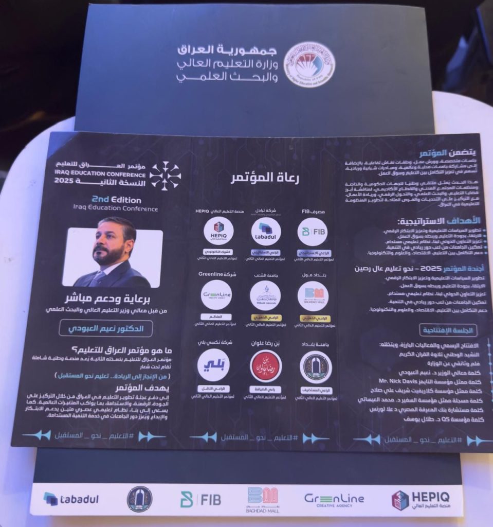برعاية وحضور معالي وزير التعليم العالي والبحث العلمي الأستاذ الدكتور نعيم العبودي انعقد المؤتمر الثاني للتعليم في العراق (Iraq Education Conference 2025 – النسخة الثانية)، والذي جاء تحت شعار (التعليم نحو المستقبل).
