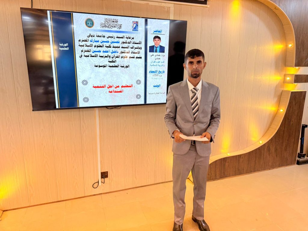 اقام قسم علوم القرآن والتربية الاسلامية ورشة عمل علمية بعنوان (التعليم من أجل التنمية المستدامة )ادار الندوة المدرس الدكتور (حمادي علي حمادي )