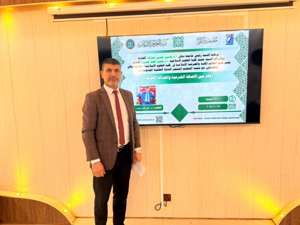 اقام قسم العلوم المالية والمصرفية الاسلامية في كلية العلوم الاسلامية جامعة ديالى ندوة علمية فكرية بعنوان (المهر بين الأصالة والحداثة الهوجاء) ادار الندوة الاستاذ الدكتور (علي قاسم زيدان )