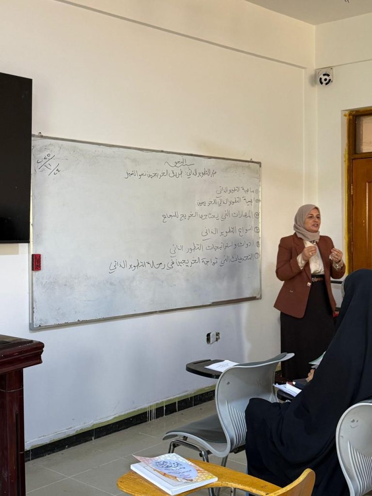 أدار الندوة المدرس المساعد الدكتور (إيمان خليفة إسماعيل) التي قدّمت عرضاً منهجياً تناول أهمية التطوير الذاتي في بناء القدرات الشخصية والمهنية للخريجين بما يتيح لهم الاستعداد الفعّال للالتحاق بسوق العمل بثقة وتميّز.