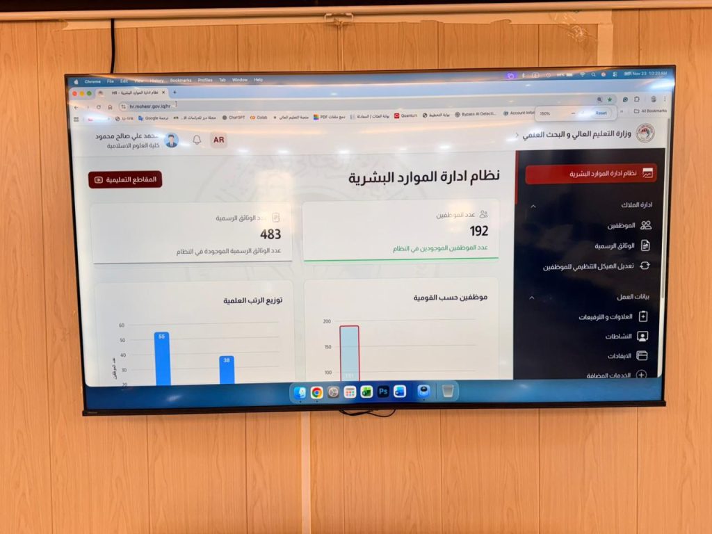 نظمت شعبة الحاسبة والانترنيت في كلية العلوم الإسلامية جامعة ديالى، ورشة عمل تدريبية بعنوان التعريف ببرنامج دائرة الموارد البشرية (HR) قدمها مهندس اقدم (سيف محمد سلمان ) والمبرمج (مصطفى عبد الاله صالح ) وبمشاركة عدد من منتسبي الكلية.