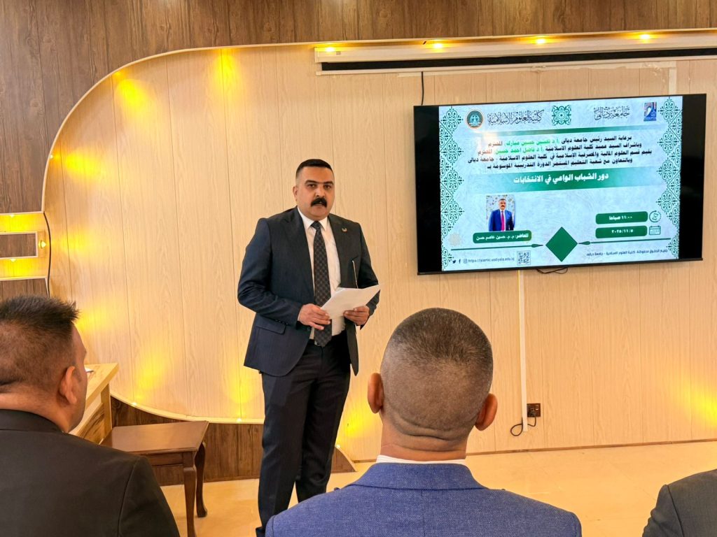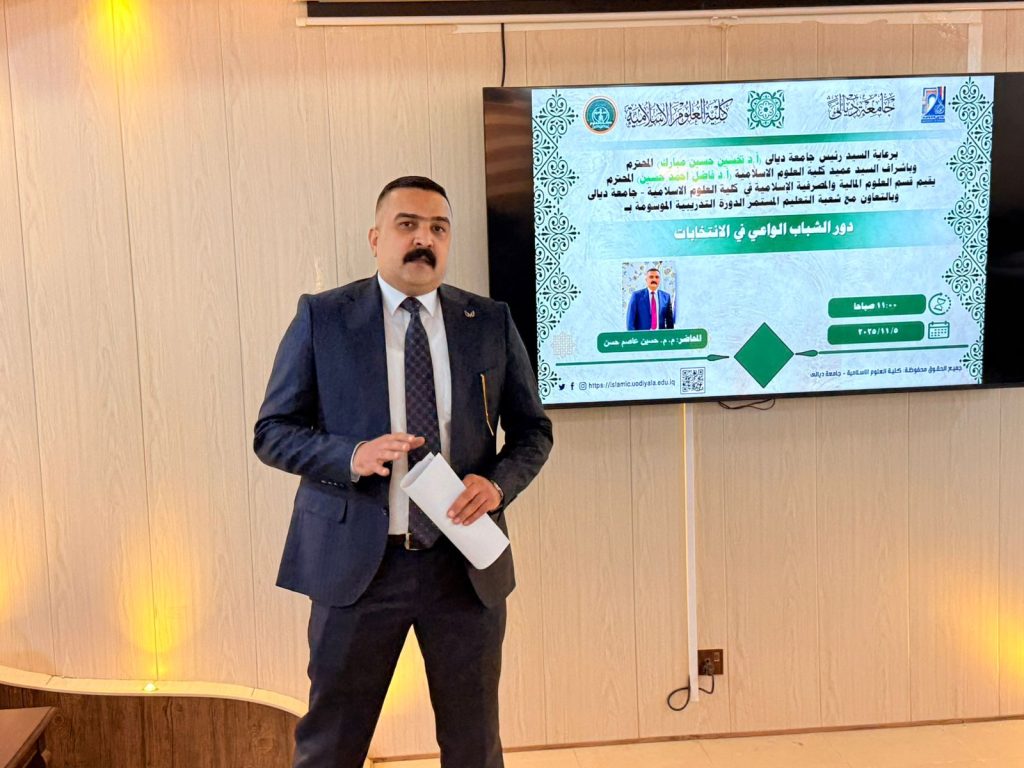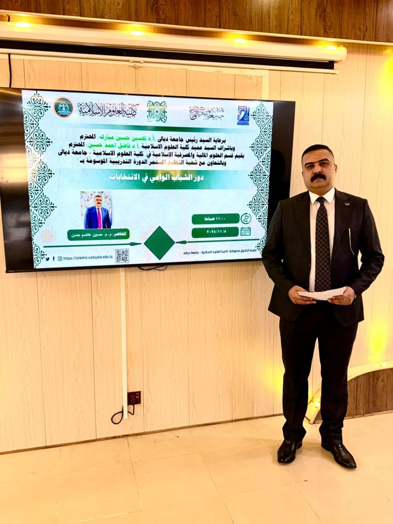 ضمن الأنشطة التوعوية التي تهدف إلى تعزيز ثقافة المشاركة المجتمعية والمسؤولية الوطنية اقام قسم العلوم المالية والمصرفية الاسلامي في كلية العلوم الإسلامية في جامعة ديالى دورة تدريبية بعنوان (دور الشباب الواعي في الانتخابات) .