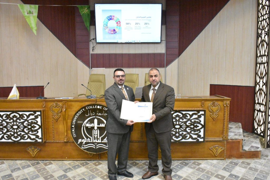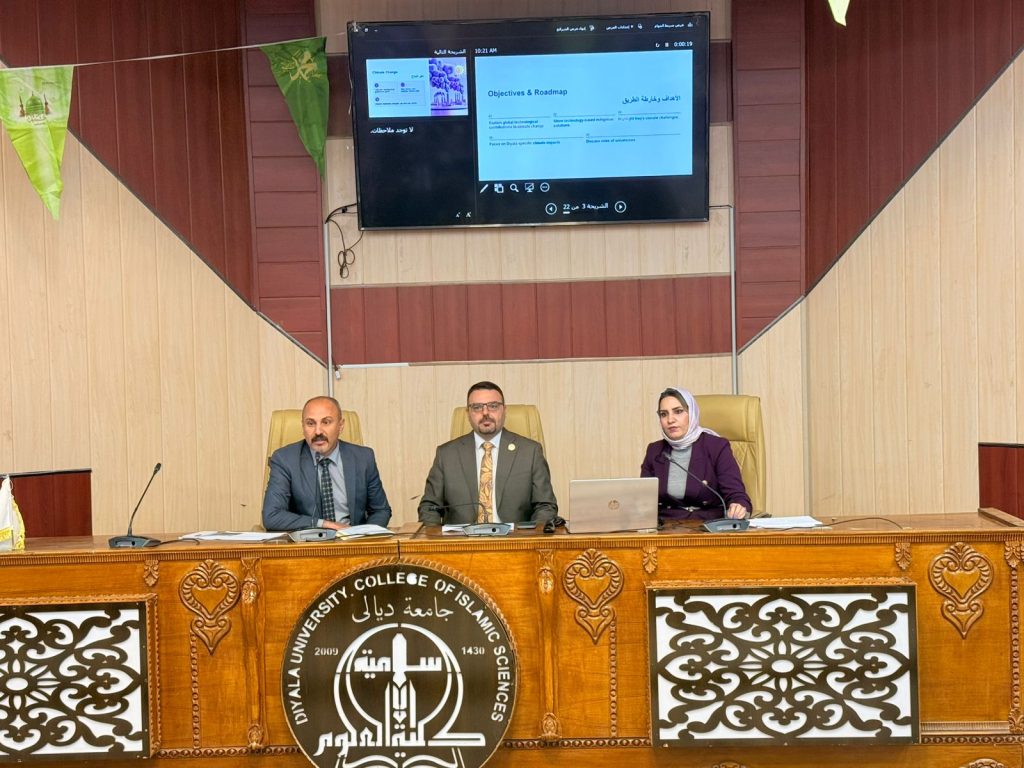برعاية السيد رئيس جامعة ديالى الاستاذ الدكتور (تحسين حسين مبارك ) وبحضور السيد المساعد الاداري لرئيس الجامعة الأستاذ الدكتور (حيدر شاكر مزهر) والسيد عميد كلية العلوم الإسلامية الأستاذ الدكتور (فاضل أحمد حسين )استضافت كلية العلوم الإسلامية ندوة علمية بعنوان (دور التكنولوجيا في مواجهة التغيير المناخي ) الذي اقامها قسم التعليم المستمر رئاسة الجامعة قدمها كل من (ا.م.د .ثائر منعم حامد )مدير قسم أدارة المشاريع الريادية