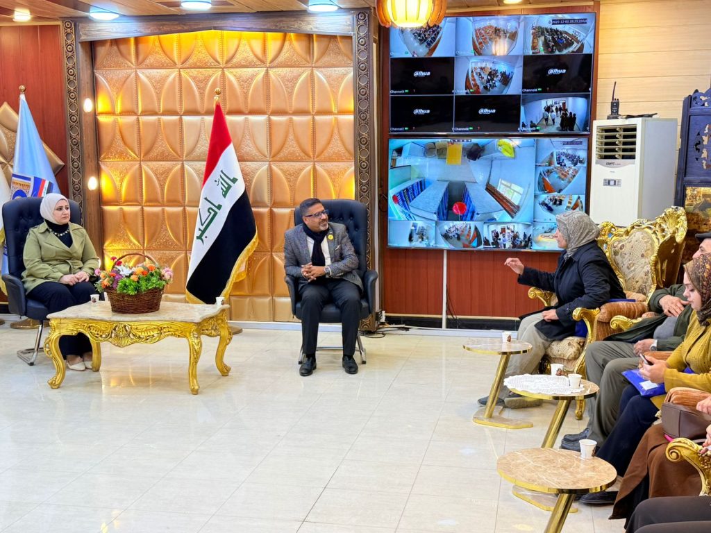 التقى السيد عميد كلية العلوم الإسلامية الأستاذ الدكتور فاضل أحمد حسين، السيدة م. مها عباس حطيط مديرة شعبة الحاضنه العلمية التكنولوجية والدكتور خالد غضبان محمد مسؤول وحدة التأهيل والتوظيف، يرافقهما عدد من مسؤولي وحدات التأهيل والتوظيف في كليات الجامعة.