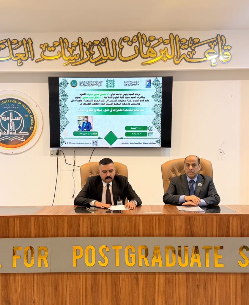 • كلية العلوم الإسلامية تنظم ندوة علمية بعنوان سياسات مكافحة المخدرات في ضوء مبادئ حقوق الإنسان