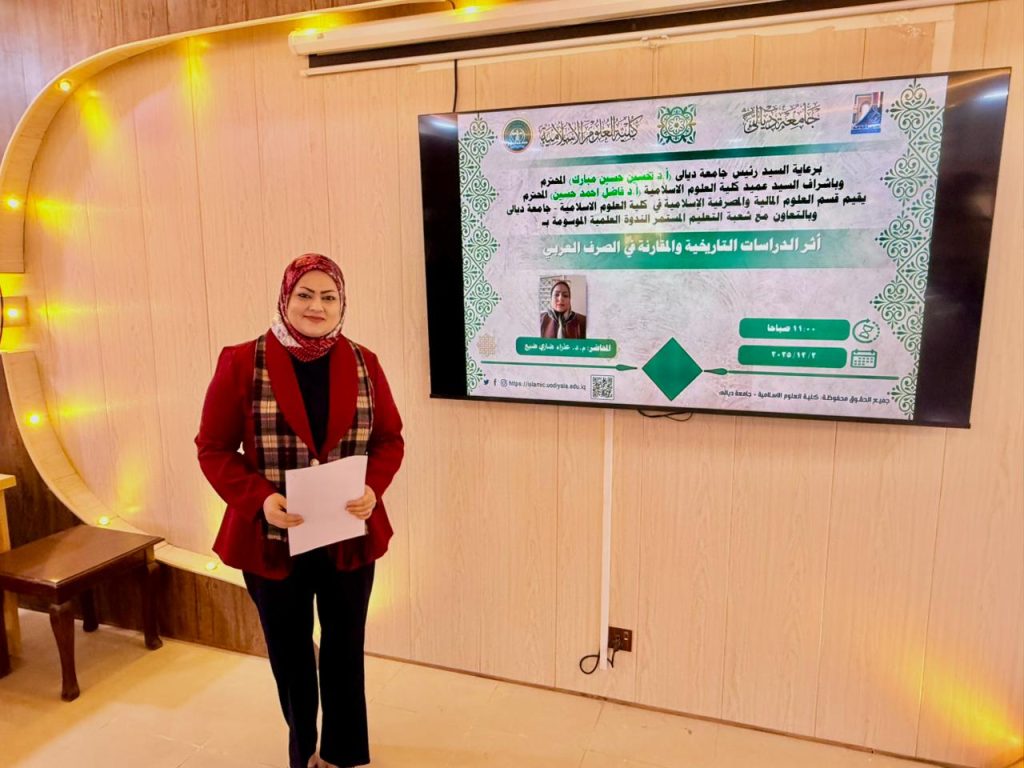 نظم قسم المالية والمصرفية في كلية العلوم الاسلامية جامعة ديالى ندوة علمية حملت عنوان (أثر الدراسة التاريخية والمقارنة في الصرف العربي )