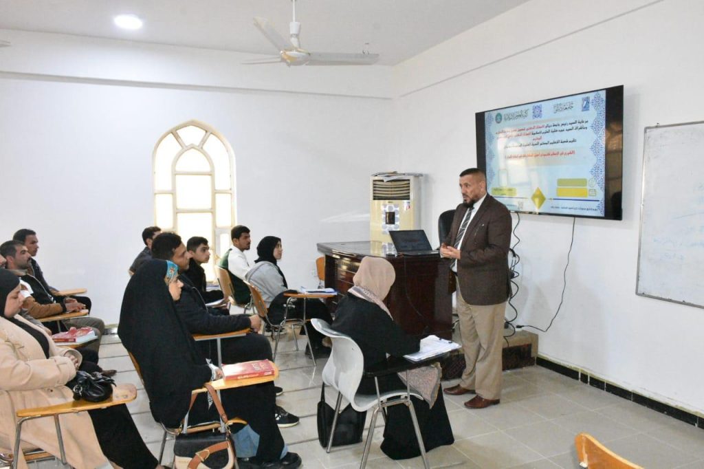نظمت وحدة التأهيل والتوظيف في كلية العلوم الإسلامية بالتعاون مع قسم علوم القرآن والتربية الاسلامية ندوة علمية بعنوان (الشورى في الإسلام كنموذج أصيل للمشاركة في اتخاذ القرار) قدمها أ.م.د صباح كريم محسن.