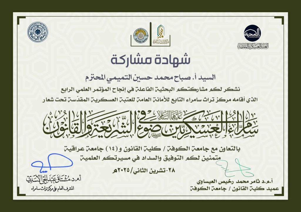 وجاءت مشاركة الأستاذ صباح محمد حسين من خلال بحثه العلمي الموسوم
