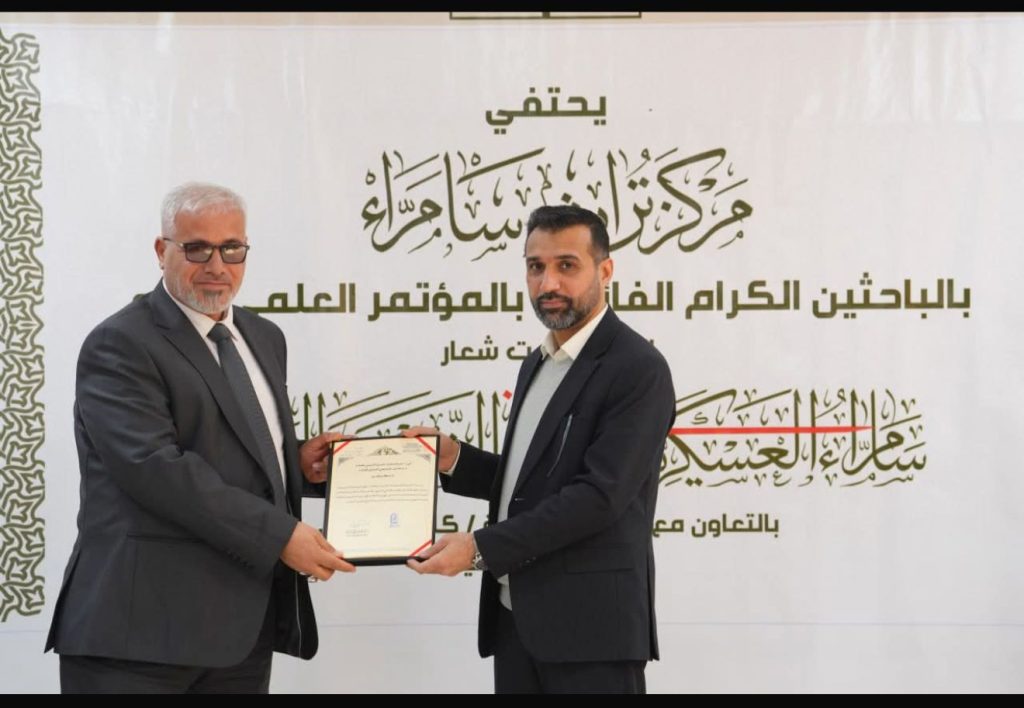 تدريسي في كلية العلوم الإسلامية جامعة ديالى يشارك في المؤتمر العلمي الرابع لمركز تراث سامراء ويكرم لبحثه المتميّز