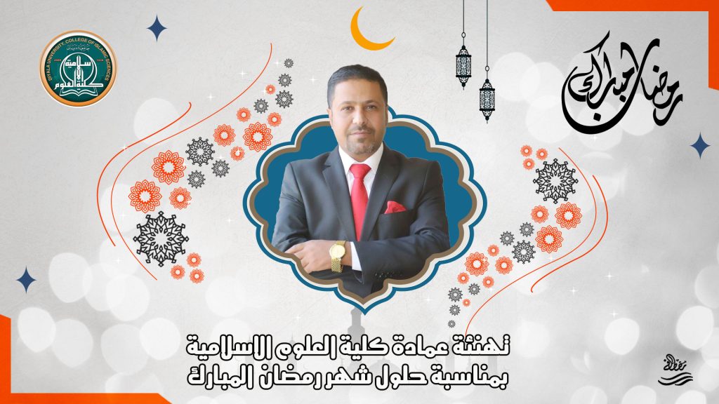 بمناسبة حلول شهر رمضان المبارك تتقدم عمادة كلية العلوم الإسلامية بجامعة ديالى بأسمى آيات التهاني والتبريكات إلى أعضاء الهيئتين التدريسية والإدارية وإلى جميع الطلبة الأعزاء سائلة المولى عز وجل أن يعيده علينا وعليكم بالخير واليمن والبركات.