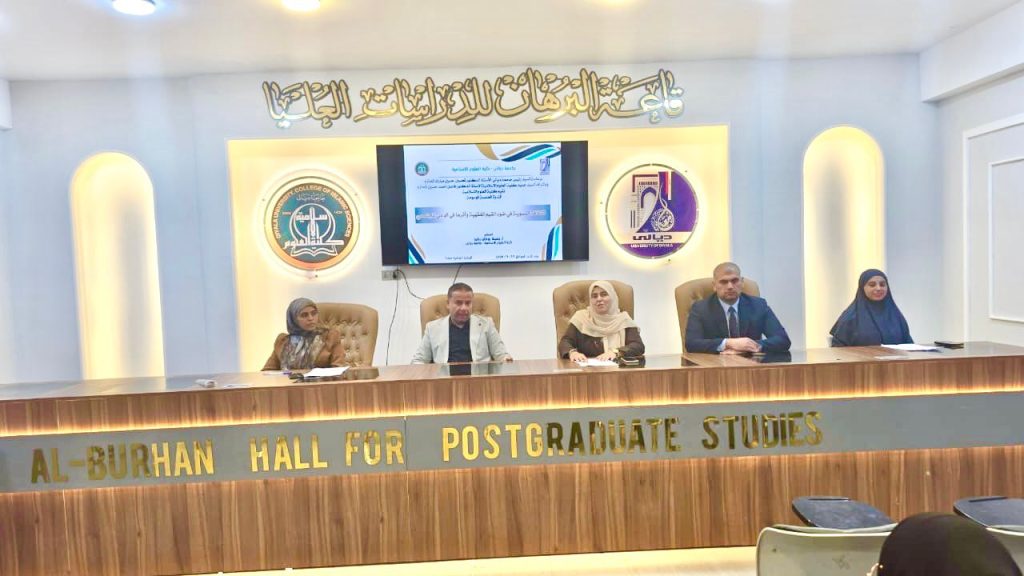 برعاية السيد عميد كلية العلوم الإسلامية في جامعة ديالى الأستاذ الدكتور فاضل أحمد حسين أقام قسم علوم القرآن في الكلية ندوة علمية توعوية بعنوان (الثقافة النسوية في ضوء القيم الفقهية وأثرها في الوعي المجتمعي) بإدارة الدكتورة أ. جميلة روكان رشيد وبمشاركة طالبات المرحلة الرابعة في القسم وذلك ضمن الأنشطة العلمية التي يحرص القسم على تنظيمها لتعزيز الوعي الثقافي والشرعي لدى الطالبات وبحضور السيد معاون العميد للشؤون الإدارية الأستاذ الدكتور أحمد عبود علوان.