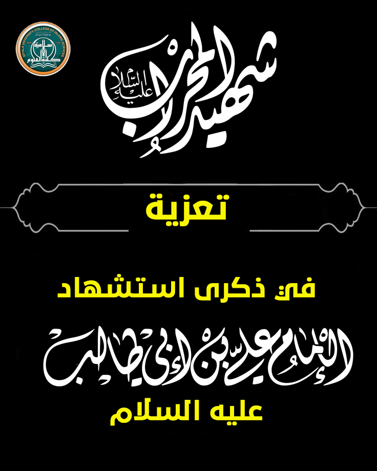 تتقدم عمادة كلية العلوم الإسلامية في جامعة ديالى ممثلةً بعميدها الأستاذ الدكتور (فاضل أحمد حسين )بأحرّ آيات التعازي والمواساة إلى الأمة الإسلامية جمعاء بذكرى استشهاد أمير المؤمنين الإمام علي بن أبي طالب (عليه السلام) تلك الفاجعة الأليمة التي ألمّت بالأمة الإسلامية في ليالي شهر رمضان المبارك.