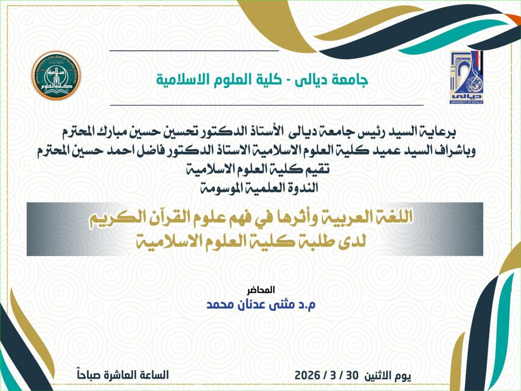 كلية العلوم الاسلامية تقيم ندوة حول اللغة العربية وأثرها في فهم علوم القرآن الكريم لدى طلبة كلية العلوم الاسلامية