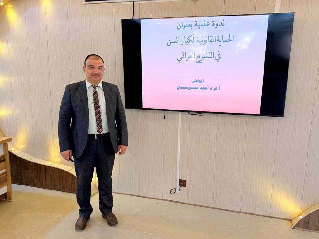 أقامت وحدة حقوق الإنسان في كلية العلوم الاسلامية جامعة ديالى ندوة علمية بعنوان (الحماية القانونية لكبار السن في التشريع العراقي) ألقاها الأستاذ المساعد الدكتور أحمد حسين سلمان