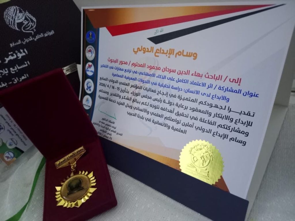 وتوّج هذا الجهد العلمي بحصوله على وسام الإبداع الدولي في إنجاز يعكس مستوى التميز الذي بلغه طلبة الكلية ويعدّ مصدر فخر واعتزاز لقسم العقيدة والفكر الإسلامي وكلية العلوم الإسلامية ودليلاً على أن الدعم الأكاديمي الرصين يسهم في صناعة طاقات قادرة على المنافسة والإبداع في المحافل العلمية.