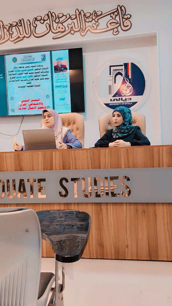أقام قسم علوم القرآن والتربية الاسلامية في كلية العلوم الإسلامية جامعة ديالى ندوة علمية بعنوان (التفسير البيئي والاجتماعي القرآن وحقوق الأجيال القادمة )ادار الندوة الاستاذ الدكتور جميلة روكان رشيد والمدرس فاطمة عبد الكريم