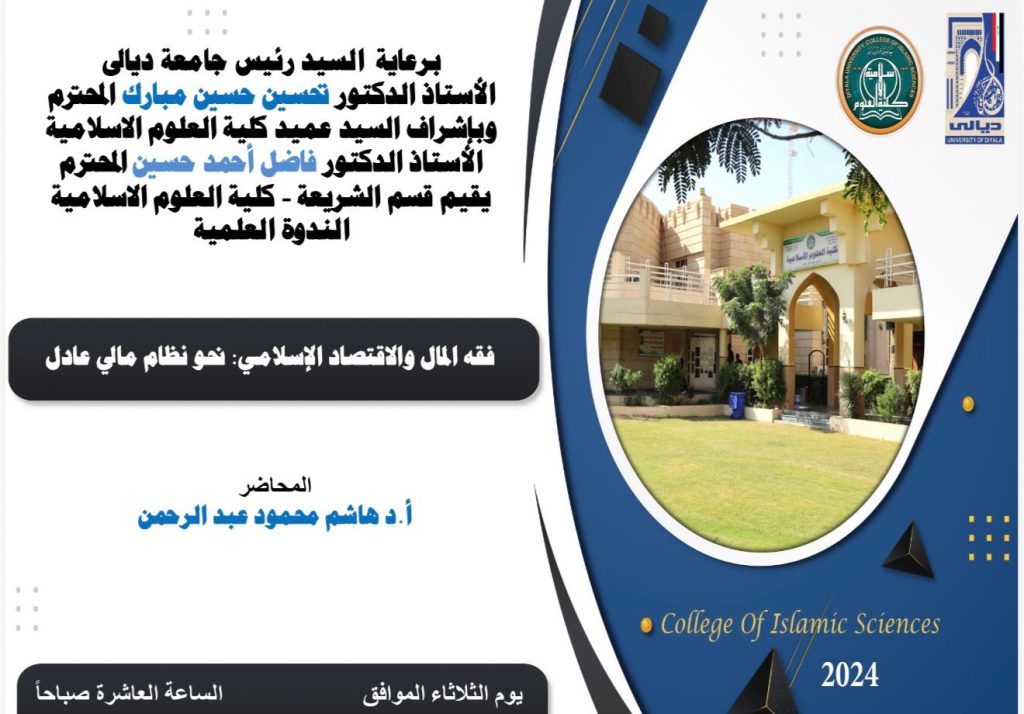 أقام قسم الشريعة في كلية العلوم الإسلامية جامعة ديالى ندوة علمية بعنوان (فقه المال والاقتصاد الإسلامي نحو نظام مالي عادل) ادار الندوة الاستاذ الدكتور (هاشم محمود عبد الرحمن )